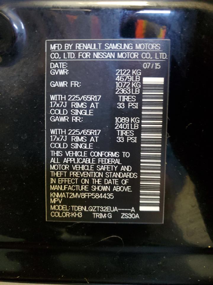 2015 NISSAN ROGUE - KNMAT2MV8FP584435, цвет - Черный, 2.5, Бензин, Полный привод из США