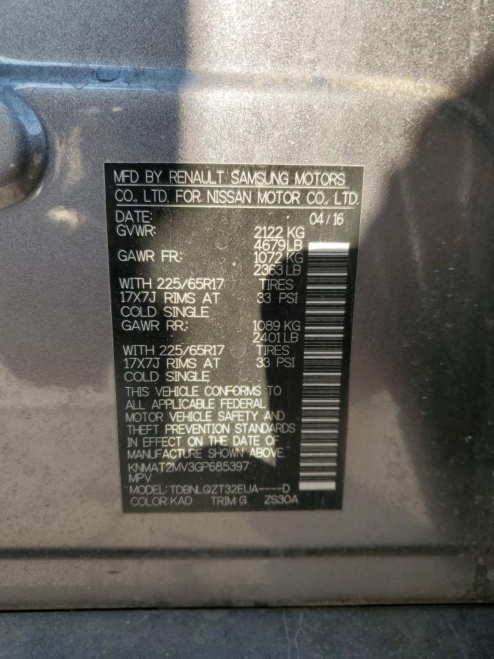 2016 NISSAN ROGUE - KNMAT2MV3GP685397, цвет - Серый, 2.5, Бензин, Полный привод из США