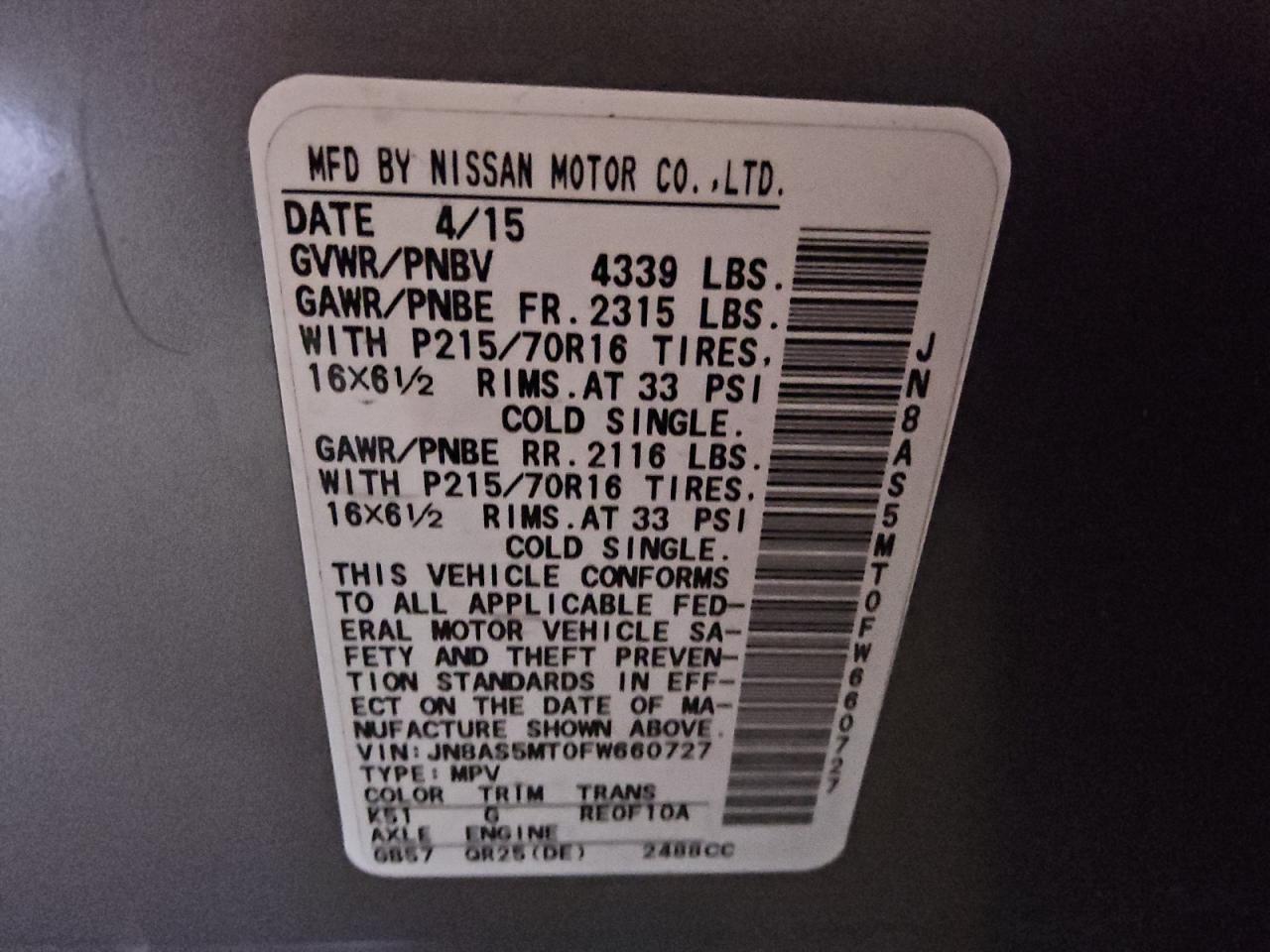 2015 NISSAN ROGUE - JN8AS5MT0FW660727, цвет - Серебряный, 2.5, Бензин, из США