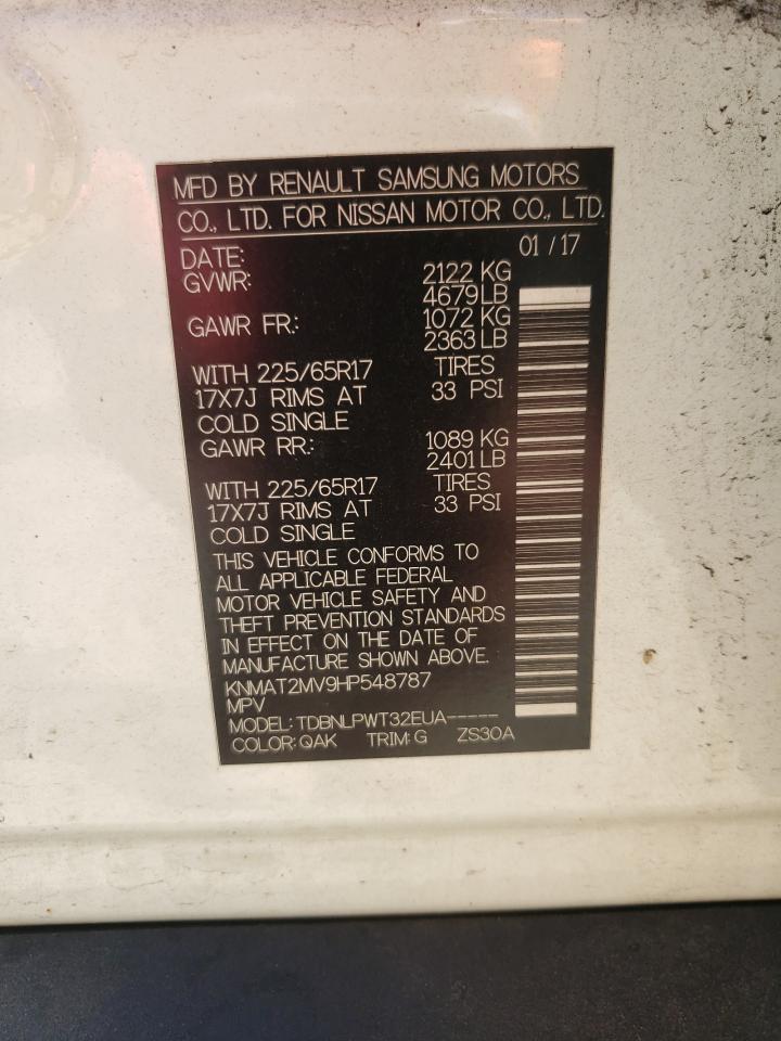 2017 NISSAN ROGUE - KNMAT2MV9HP548787, цвет - Белый, 2.5, Бензин, Полный привод из США