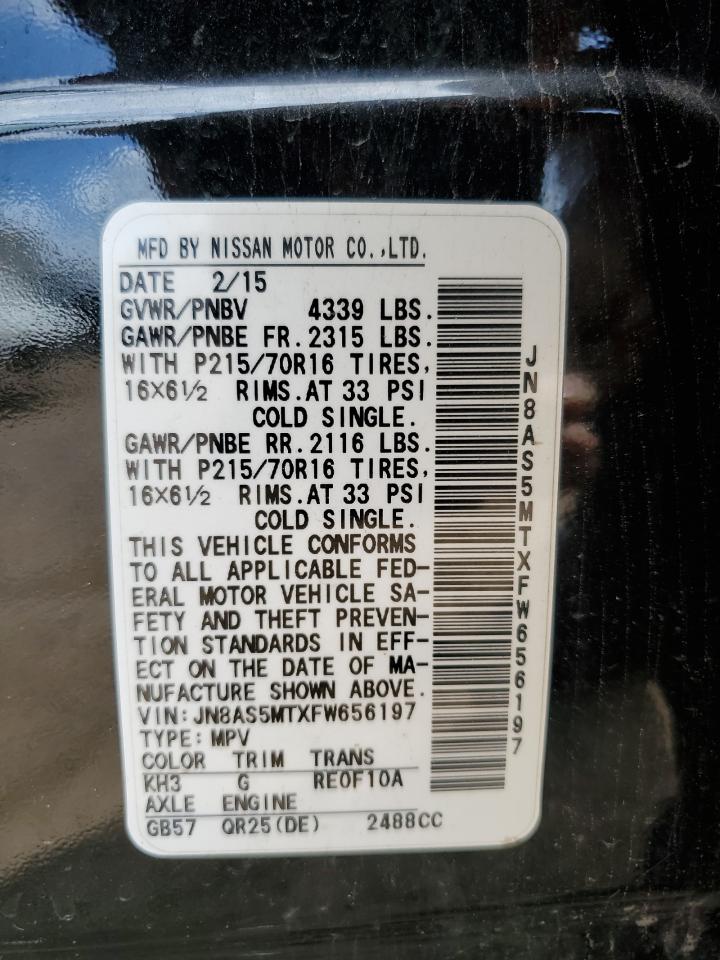 2015 NISSAN ROGUE - JN8AS5MTXFW656197, цвет - Черный, 2.5, Бензин, из США