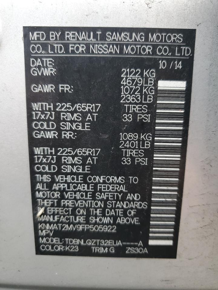 2015 NISSAN ROGUE - KNMAT2MV9FP505922, цвет - Серебряный, 2.5, Бензин, Полный привод из США