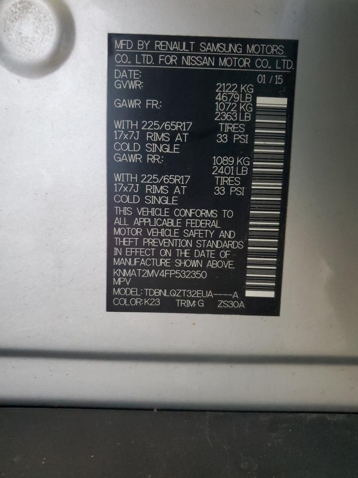 2015 NISSAN ROGUE - KNMAT2MV4FP532350, цвет - Серебряный, 2.5, Бензин, Полный привод из США
