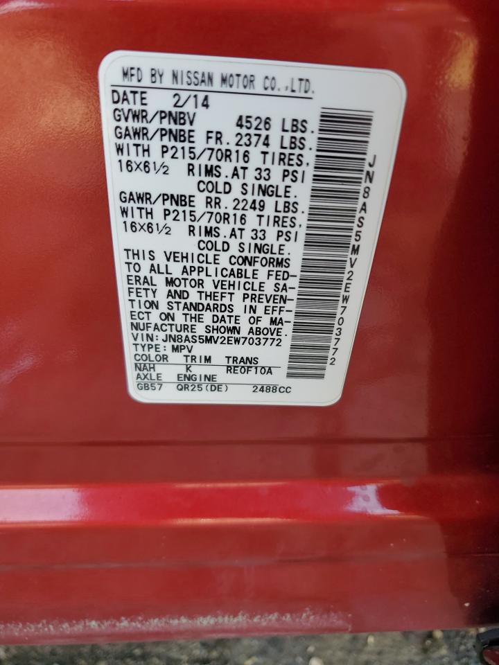 2014 NISSAN ROGUE - JN8AS5MV2EW703772, цвет - Красный, 2.5, Бензин, Полный привод из США