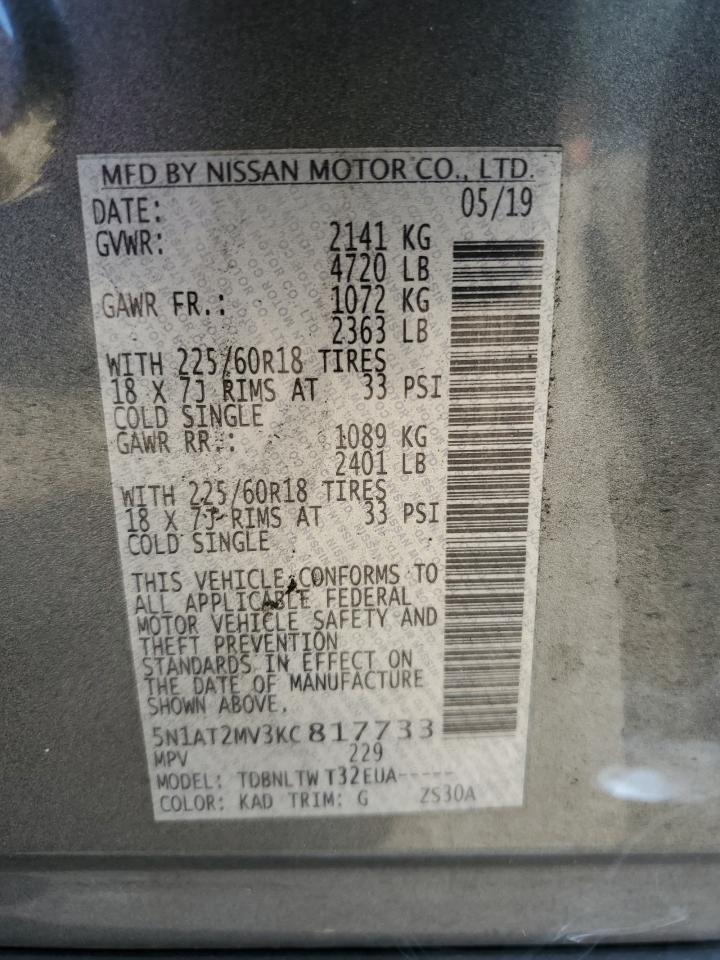 2019 NISSAN ROGUE - 5N1AT2MV3KC817733, цвет - Серый, 2.5, Бензин, Полный привод из США