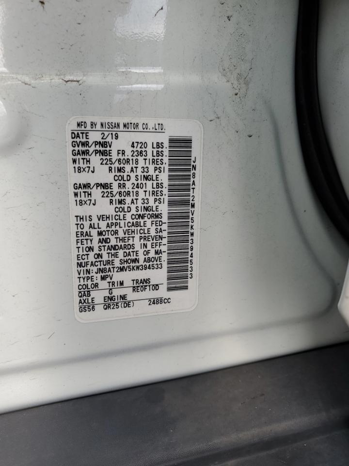 2019 NISSAN ROGUE - JN8AT2MV5KW394533, цвет - Белый, 2.5, Бензин, Полный привод из США