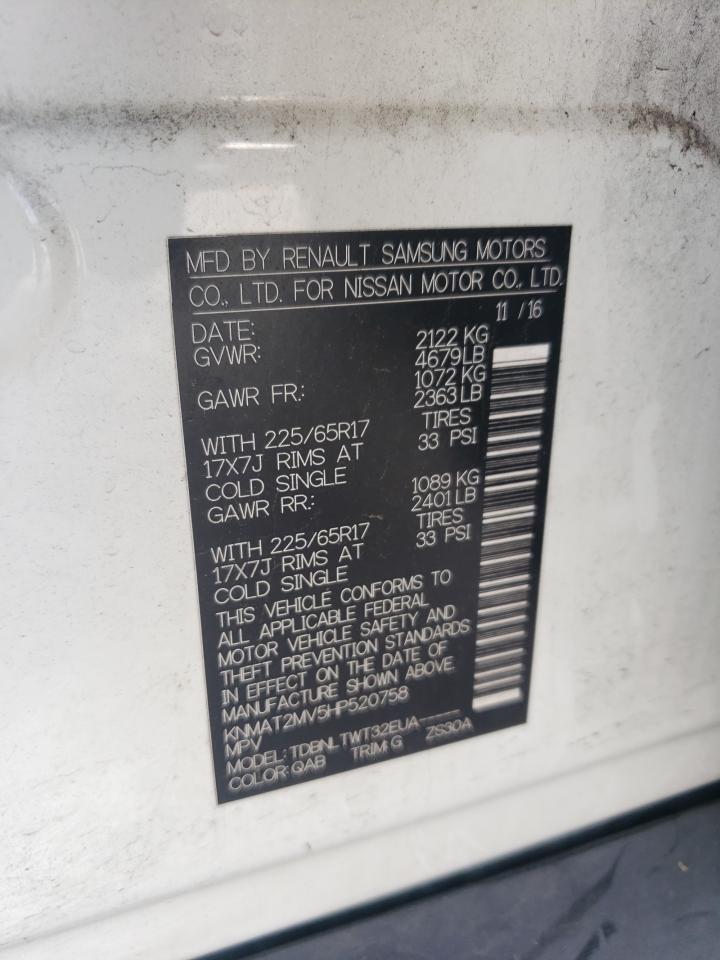 2017 NISSAN ROGUE - KNMAT2MV5HP520758, цвет - Белый, 2.5, Бензин, Полный привод из США