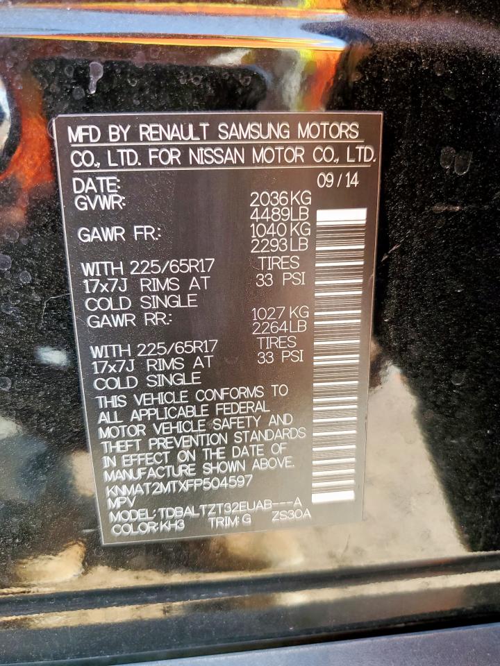 2015 NISSAN ROGUE - KNMAT2MTXFP504597, цвет - Черный, 2.5, Бензин, из США