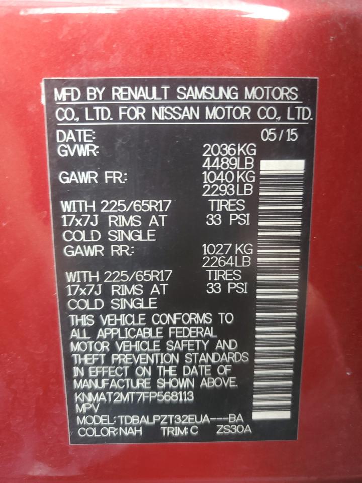 2015 NISSAN ROGUE - KNMAT2MT7FP568113, цвет - Красный, 2.5, Бензин, из США