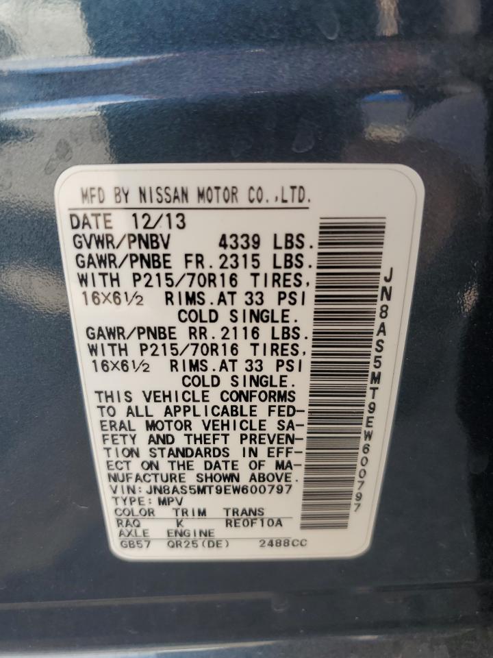 2014 NISSAN ROGUE - JN8AS5MT9EW600797, цвет - Синий, 2.5, Бензин, из США