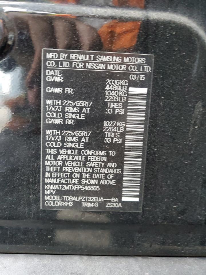 2015 NISSAN ROGUE - KNMAT2MTXFP546865, цвет - Черный, 2.5, Бензин, из США