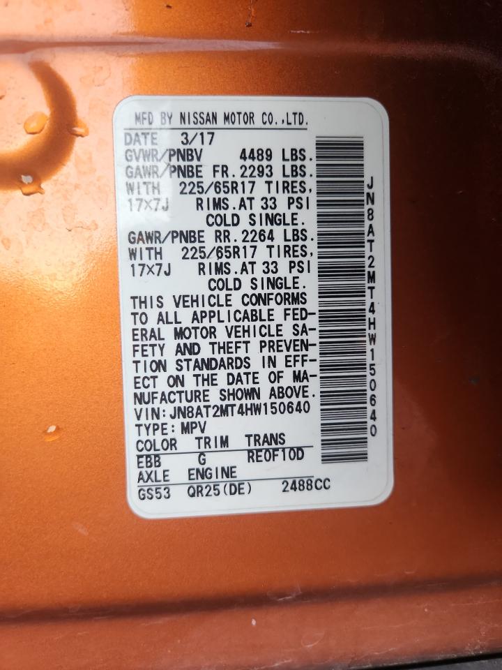 2017 NISSAN ROGUE - JN8AT2MT4HW150640, цвет - Апельсиновый, 2.5, Бензин, из США