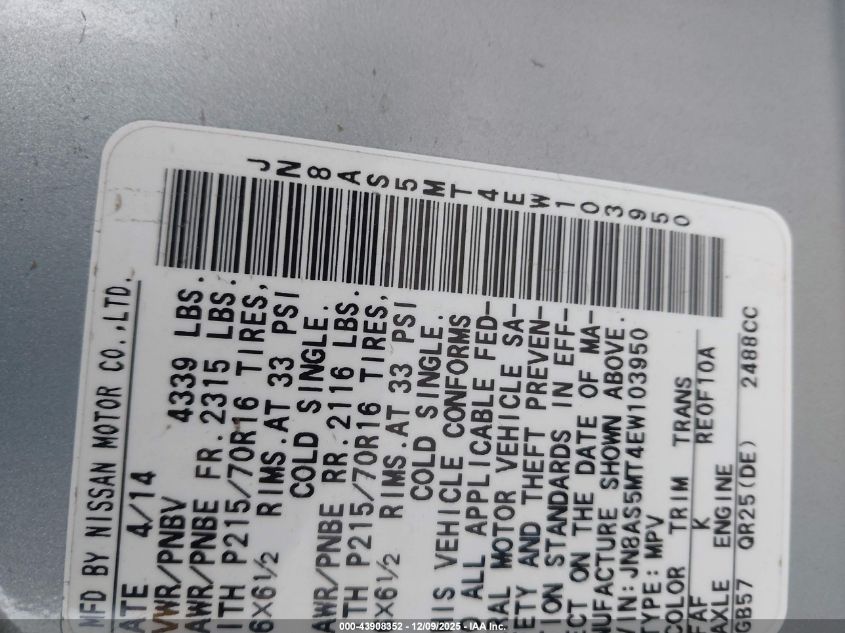 Цвет СинийЦилиндры 4Привод Передний приводVIN JN8AS5MT4EW103950Состояние СтационарноПовреждения Правая сторона