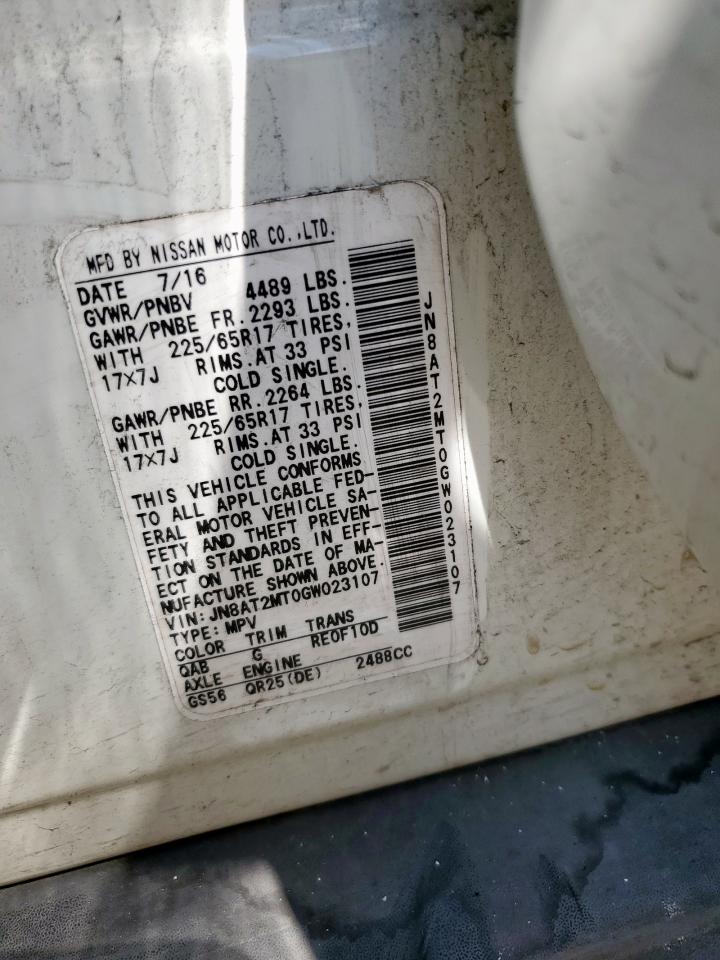 2016 NISSAN ROGUE - JN8AT2MT0GW023107, цвет - Белый, 2.5, Бензин, из США