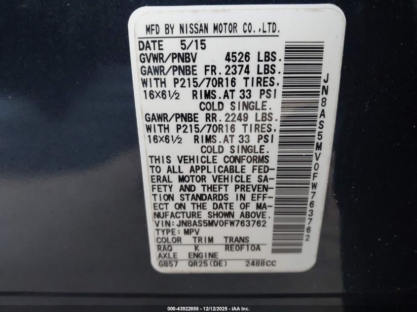 2015 NISSAN ROGUE S