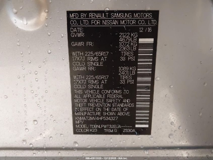 Цвет СеребряныйЦилиндры 4Привод Полный приводVIN KNMAT2MV4HP534327Состояние СтационарноПовреждения Правая сторона
