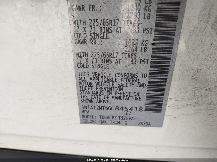 Цвет БелыйЦилиндры 4Привод Передний приводVIN 5N1AT2MT6GC845418Состояние Заводится и едет (проверено)Повреждения Передняя или задняя