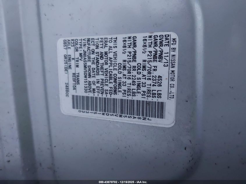 2013 NISSAN ROGUE - JN8AS5MV5DW151330, цвет - Серебряный, 2.5, Бензин, Полный привод из США