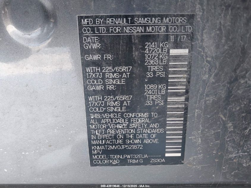 Цвет СерыйЦилиндры 4Привод Полный приводVIN KNMAT2MV0JP521872Состояние Заводится и едет (проверено)Повреждения Передняя или задняя