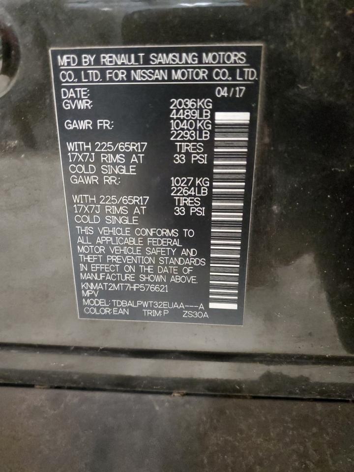 2017 NISSAN ROGUE - KNMAT2MT7HP576621, цвет - Древесный уголь, 2.5, Бензин, из США