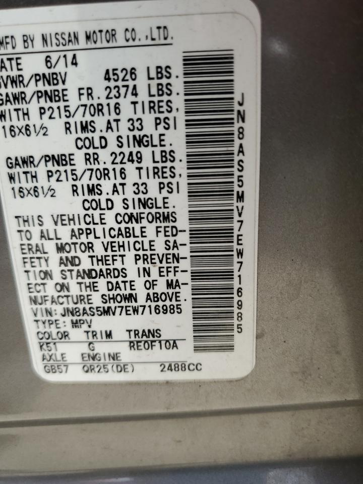 2014 NISSAN ROGUE - JN8AS5MV7EW716985, цвет - Серебряный, 2.5, Бензин, Полный привод из США