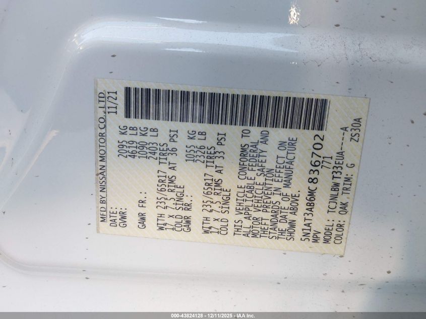 2021 NISSAN ROGUE - 5N1AT3AB6MC836702, цвет - Белый, 2.5, Бензин, Полный привод из США