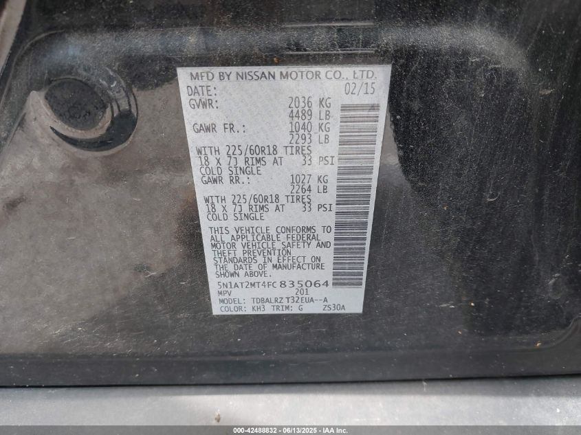 2015 NISSAN ROGUE - 5N1AT2MT4FC835064, цвет - Черный, 2.5, Бензин, Передний привод из США
