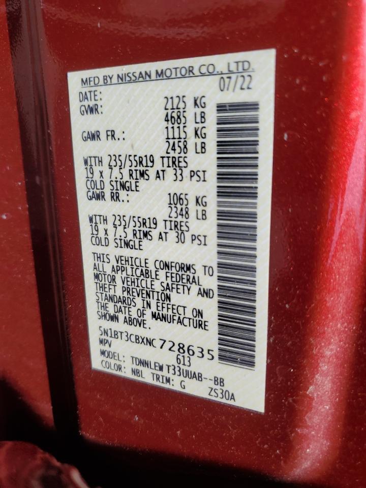 2022 NISSAN ROGUE - 5N1BT3CBXNC728635, цвет - Бургундия, 1.5, Бензин, Полный привод из США