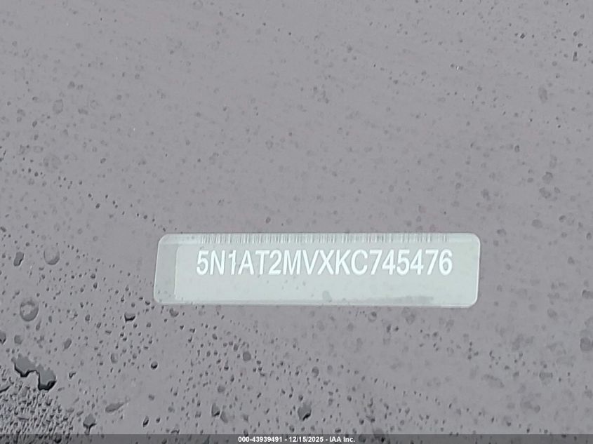 2019 NISSAN ROGUE - 5N1AT2MVXKC745476, цвет - Черный, 2.5, Бензин, Полный привод из США