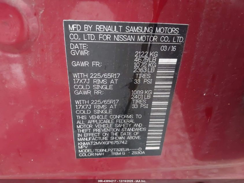 2016 NISSAN ROGUE S