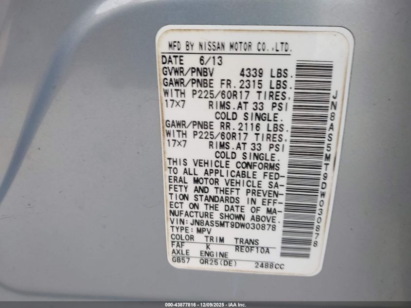 2013 NISSAN ROGUE - JN8AS5MT9DW030878, цвет - Синий, 2.5, Бензин, Передний привод из США
