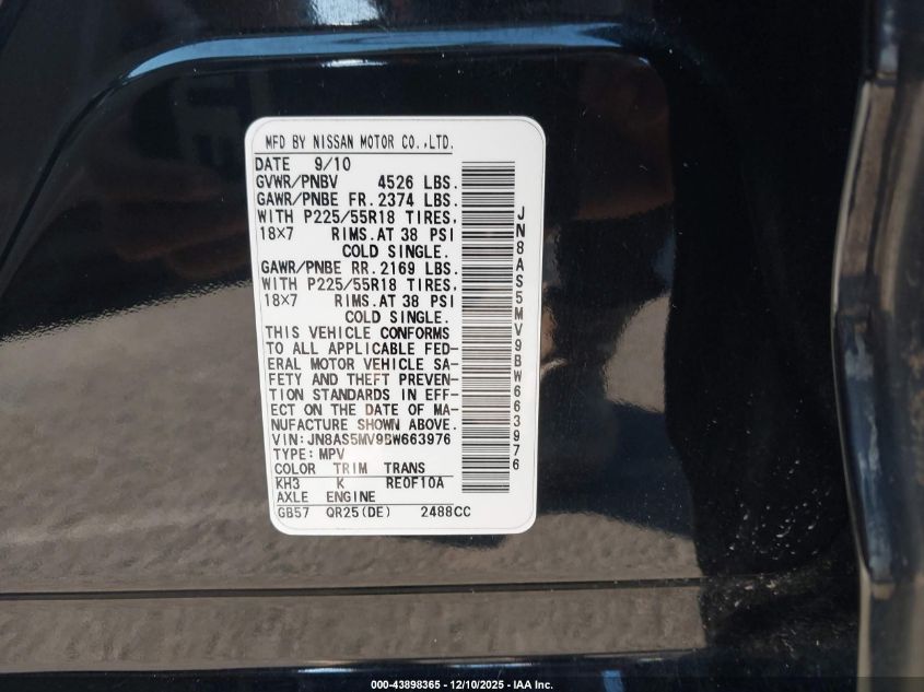 2011 NISSAN ROGUE - JN8AS5MV9BW663976, цвет - Черный, 2.5, Бензин, Полный привод из США