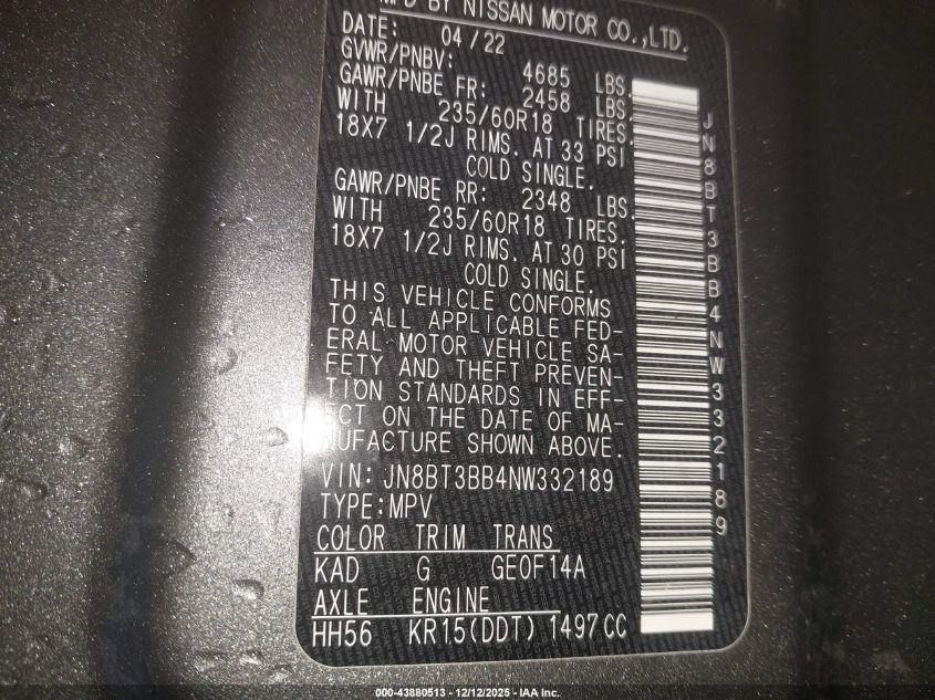 Цвет СерыйЦилиндры 3Привод Полный приводVIN JN8BT3BB4NW332189Состояние Заводится и едет (проверено)Повреждения Правая сторона
