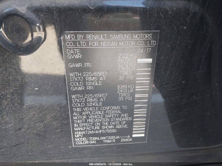 2017 NISSAN ROGUE - KNMAT2MV4HP575590, цвет - Черный, 2.5, Бензин, Полный привод из США