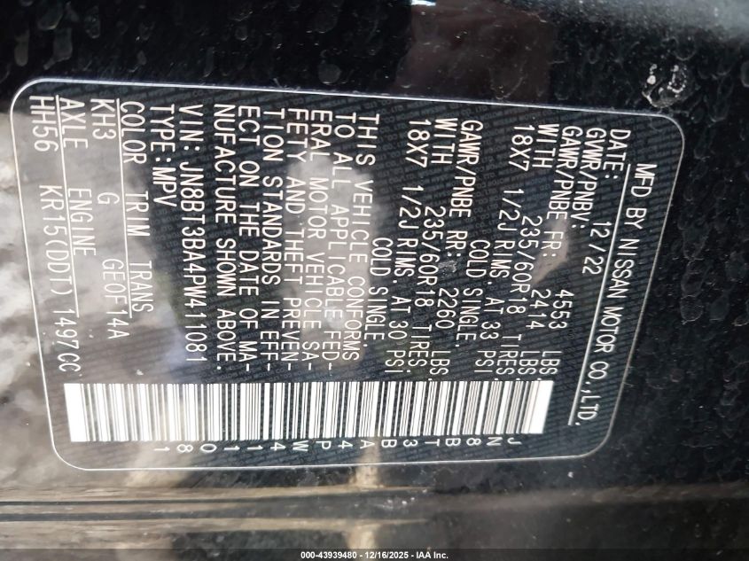 2023 NISSAN ROGUE - JN8BT3BA4PW411081, цвет - , 1.5, Бензин, Передний привод из США