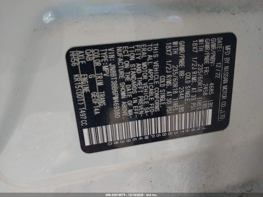 2023 NISSAN ROGUE - JN8BT3BB6PW469380, цвет - Белый, 1.5, Бензин, Полный привод из США