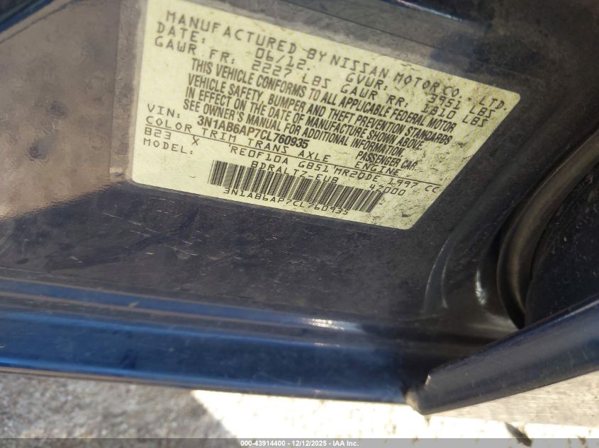2012 NISSAN SENTRA - 3N1AB6AP7CL760935, цвет - Синий, 2.0, Бензин, Передний привод из США