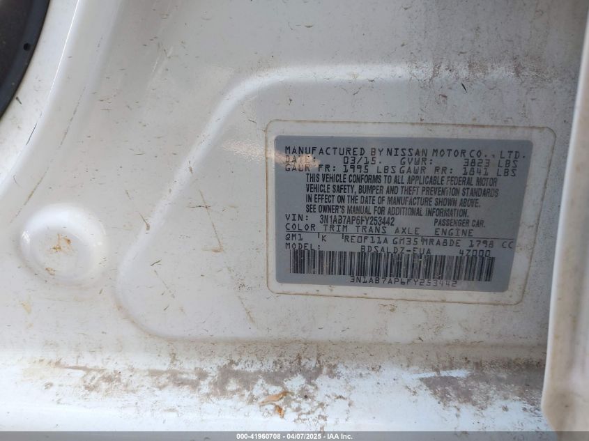 2015 NISSAN SENTRA - 3N1AB7AP6FY253442, цвет - Черный, 1.8, Бензин, Передний привод из США
