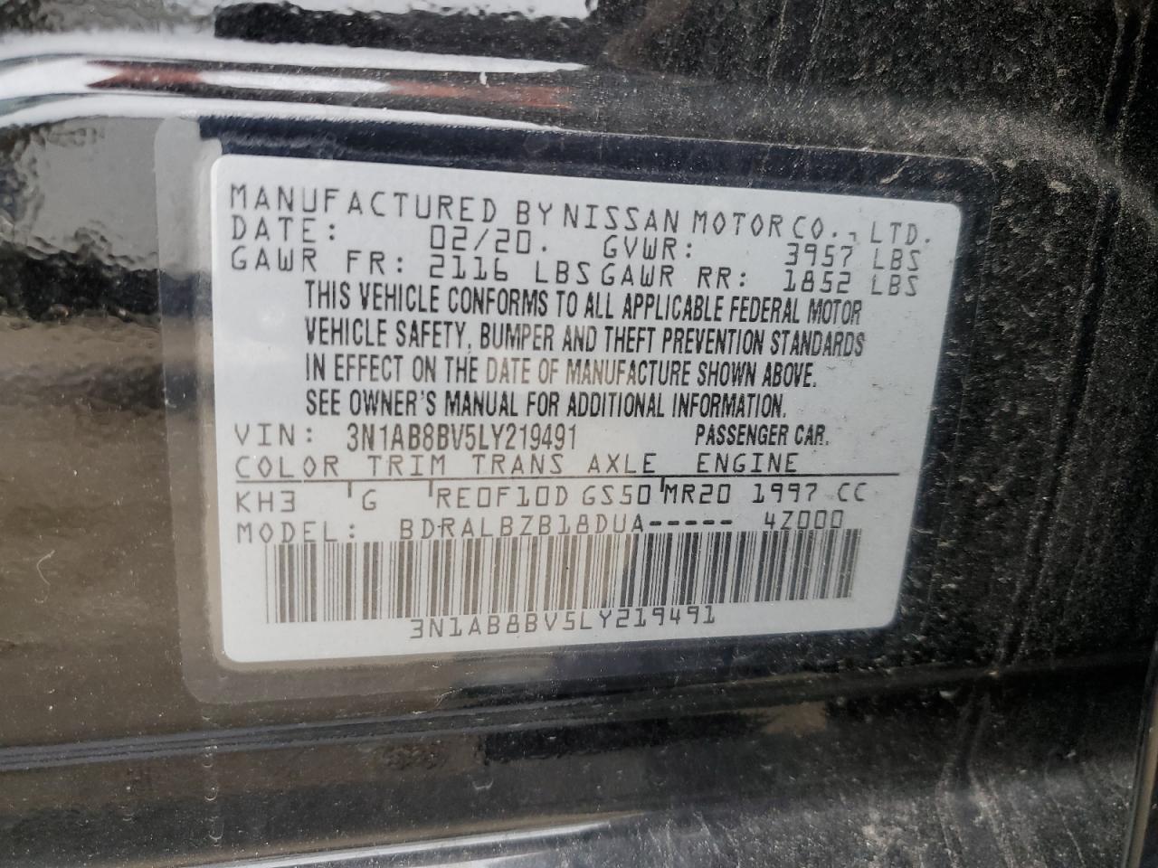 2020 NISSAN SENTRA - 3N1AB8BV5LY219491, цвет - Черный, 2.0, Бензин, из США
