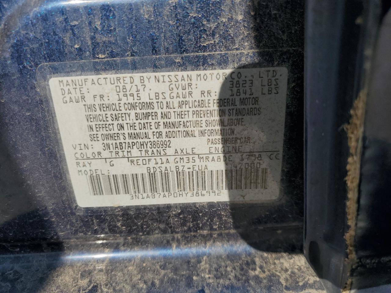 2017 NISSAN SENTRA - 3N1AB7AP0HY386992, цвет - Синий, 1.8, Бензин, из США