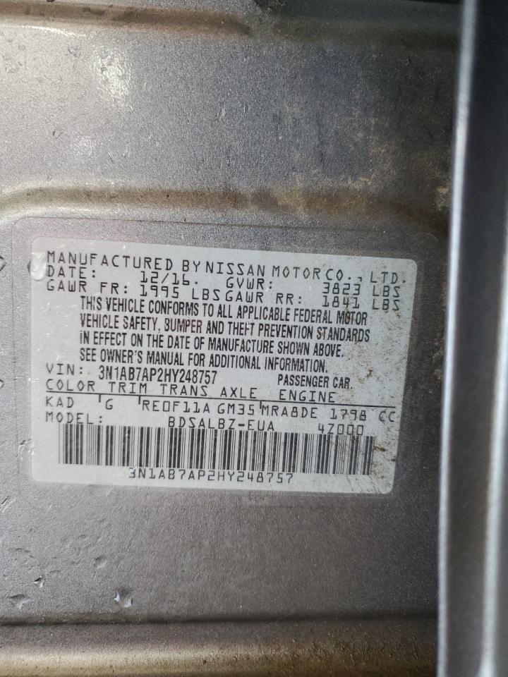 2017 NISSAN SENTRA - 3N1AB7AP2HY248757, цвет - Серый, 1.8, Бензин, из США