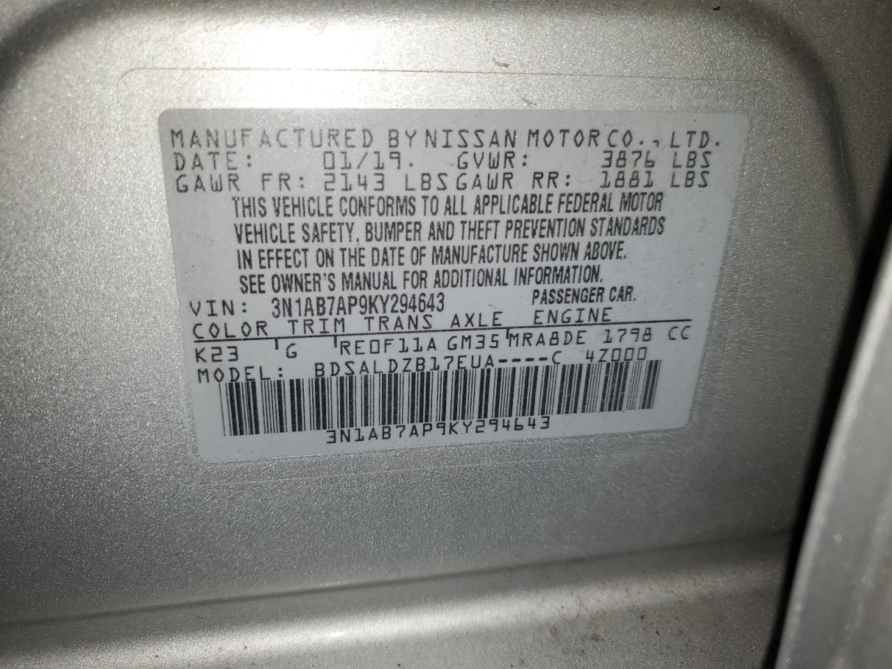 2019 NISSAN SENTRA - 3N1AB7AP9KY294643, цвет - Серебряный, 1.8, Бензин, из США