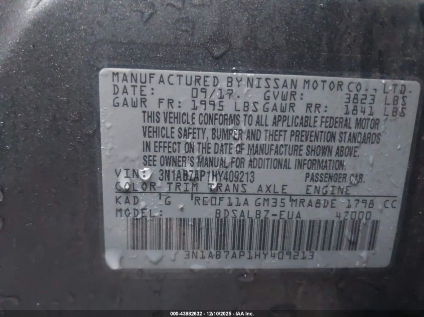 2017 NISSAN SENTRA - 3N1AB7AP1HY409213, цвет - Серый, 1.8, Бензин, Передний привод из США