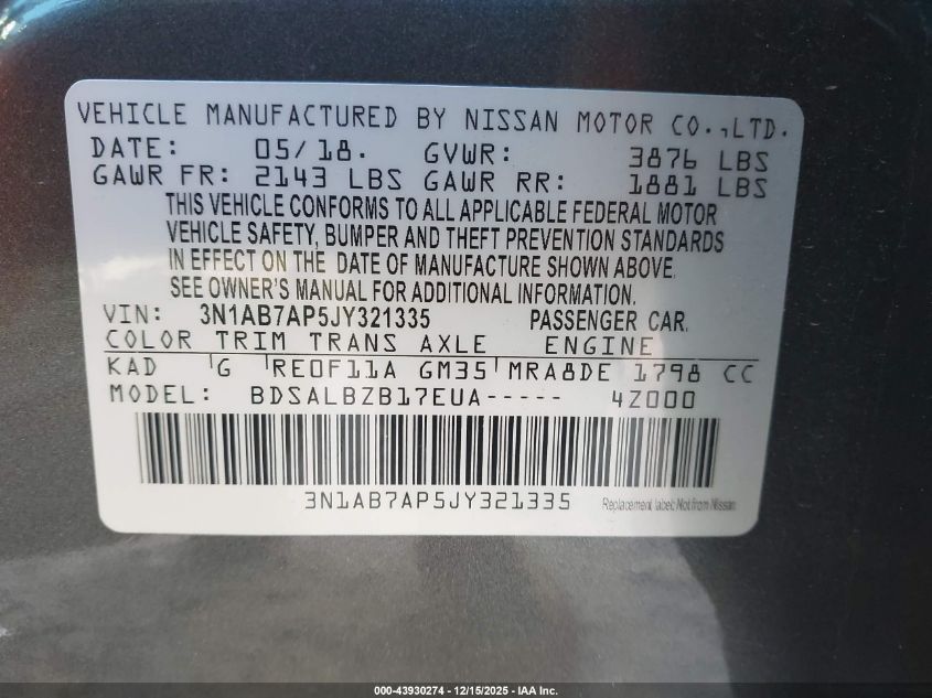 Цвет СерыйЦилиндры 4Привод Передний приводVIN 3N1AB7AP5JY321335Состояние Заводится и едет (проверено)Повреждения Передняя или задняя
