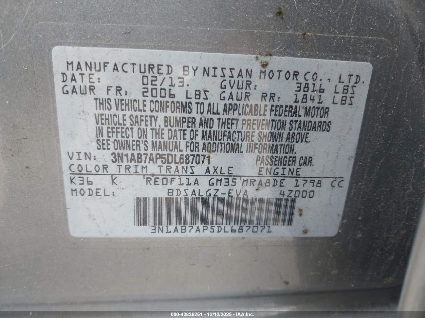 Цвет СерыйЦилиндры 4Привод Передний приводVIN 3N1AB7AP5DL687071Состояние СтационарноПовреждения По всему авто