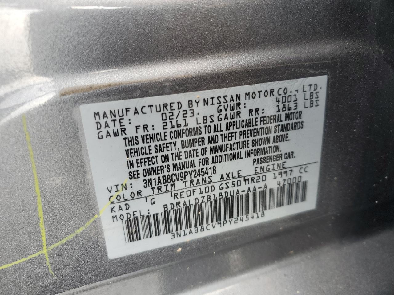 2023 NISSAN SENTRA - 3N1AB8CV9PY245418, цвет - Серый, 2.0, Бензин, из США