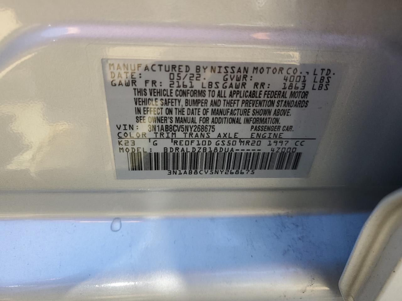 2022 NISSAN SENTRA - 3N1AB8CV5NY268675, цвет - Серебряный, 2.0, Бензин, из США