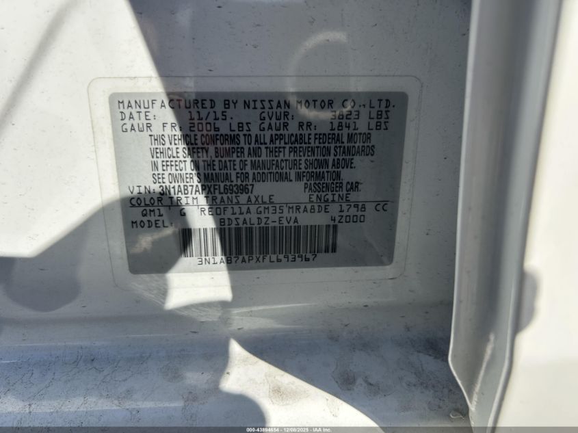 2015 NISSAN SENTRA - 3N1AB7APXFL693967, цвет - Белый, 1.8, Бензин, Передний привод из США