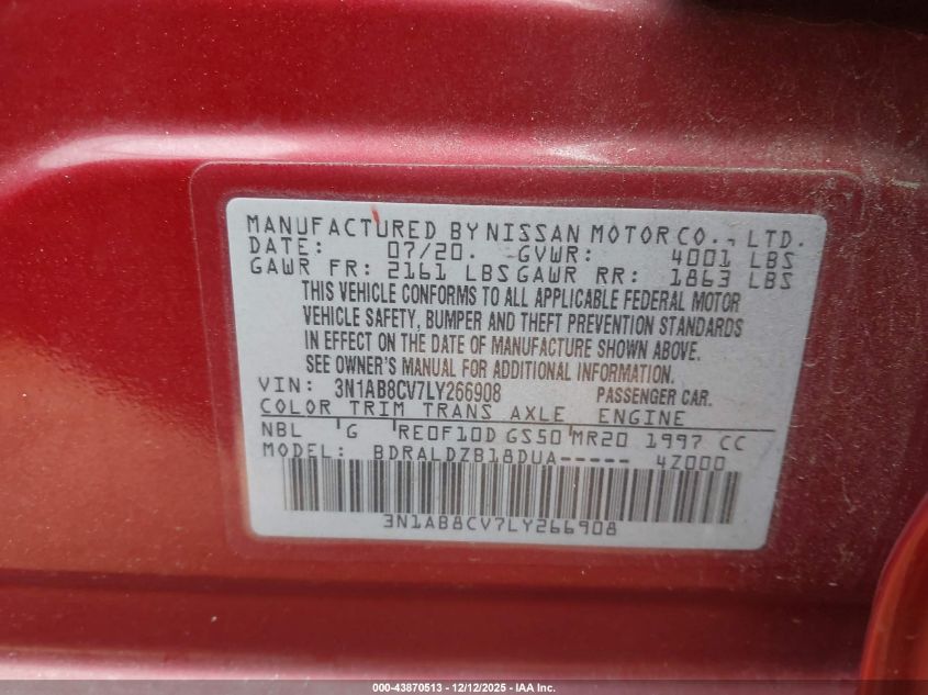 2020 NISSAN SENTRA - 3N1AB8CV7LY266908, цвет - Красный, 2.0, Бензин, Передний привод из США