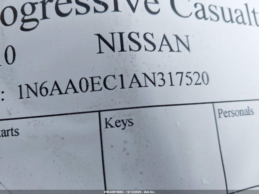 2010 NISSAN TITAN - 1N6AA0EC1AN317520, цвет - Серый, 5.6, Бензин, Полный привод из США